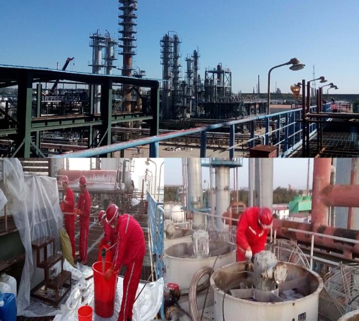 ????? 我公司與洛陽某大型煉化企業(yè)達(dá)成協(xié)議,順利完成五臺復(fù)合型蒸發(fā)式冷卻器的清洗工作。我公司員工同心協(xié)力,眾志成城,現(xiàn)場工作井然有序,是一支經(jīng)驗豐富、高素養(yǎng)的清洗隊伍。清洗過程中,為了防止清洗液外濺,公司采取有效的保護(hù)措施,對平臺格柵起到了很好的保護(hù)作用。在業(yè)主的精誠協(xié)助下,公司順利完成清洗工作,清洗效果達(dá)到預(yù)期,提前完工,為業(yè)主的下一步工作安排贏取了寶貴的時間,因此公司也獲得業(yè)主的一致好評。