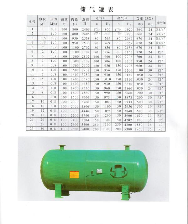 儲氣罐參數(shù)表